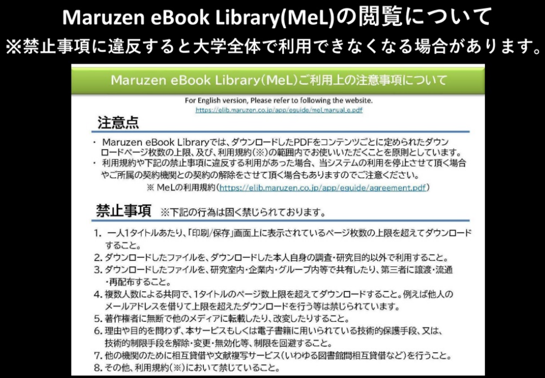 以上を了承の上、Maruzen eBook Libraryを利用します。