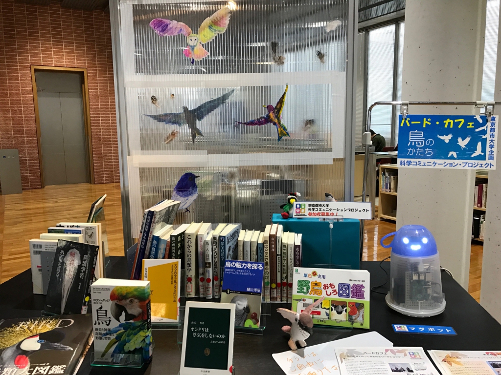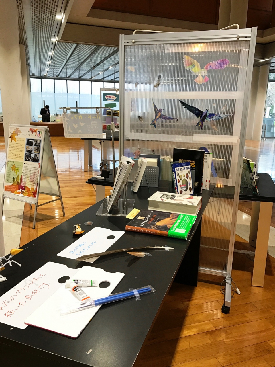 2016年10月に夢キャンパスで開催されたワークショップの作品と図書館の鳥にまつわる本