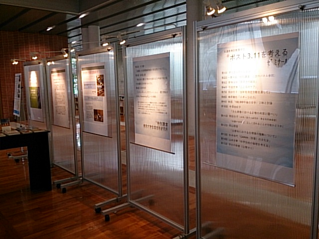 世田谷キャンパス図書館1F図書館ギャラリーでは、8月5日(月)まで共通教育部教養ゼミナール「東京都市大学からポスト3.11を考える」を開催。