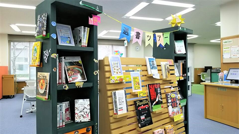 「学生選書ツアー」で選書された本を展示・貸出しています。