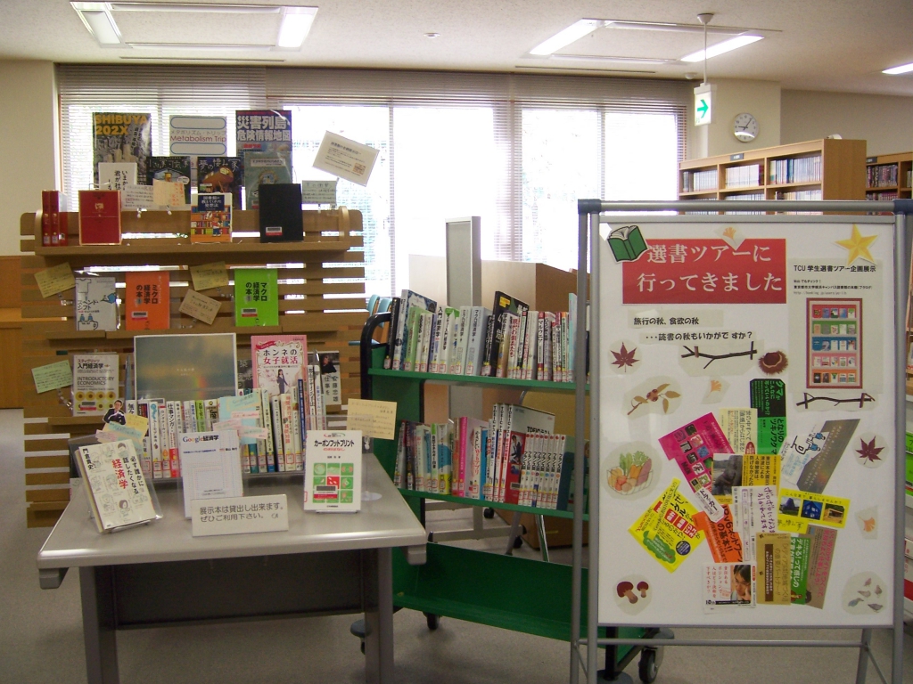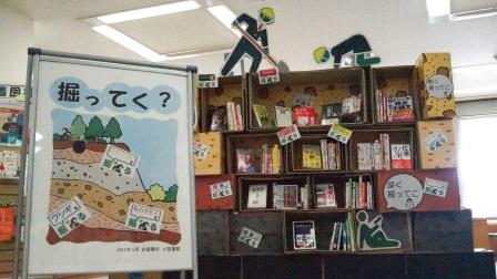 横浜キャンパス図書館では、企画展示 「掘ってく?」をやっています。 ”読んで色んな世界をのぞいて、浅く広く、深く深く、掘って掘って掘り下げてみよう!” ・・・そんな感じです。 図書館に 寄ってこ読んでこ 掘ってこー 他キャンパスの皆さんもどうぞご利用ください。 【展示の様子】 ※画像をクリックすると拡大します。 <今回のテーマは ↑ > <掘るって?> <アルバイトの皆さんが作ったダンボール本棚> (関連ページ) ※横浜キャンパス図書館のWeb本棚
