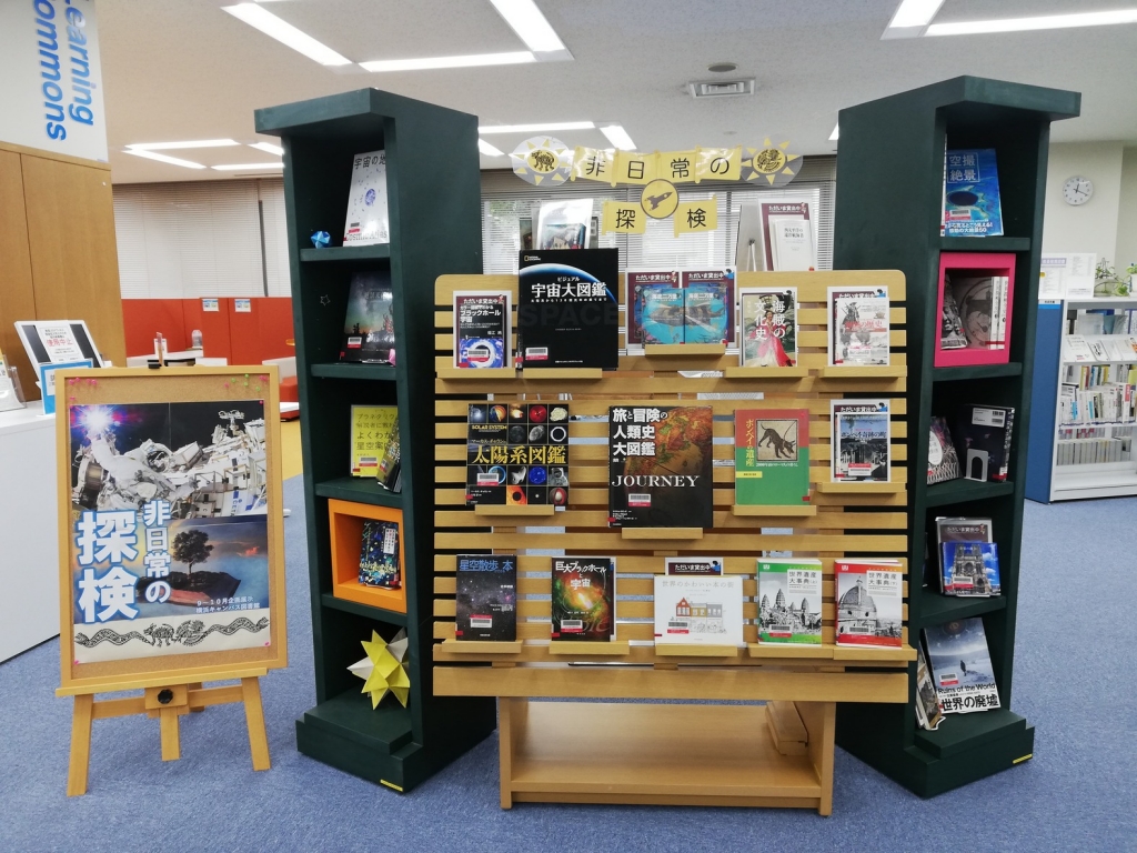 一覧へ 【終了しました】YC展示「非日常の探検」開催中 投稿日時: 2020/09/25 横浜 横浜キャンパス図書館では読むだけで非日常を味わえる本を展示中です。なかなか遠くまで出かけられない昨今ですが、読書で海外の景色に思いを馳せたり、非日常を感じられるように、探検や遺跡をはじめ、宇宙、歴史、ファンタジーやSFに関する図書を集めました。(#非日常の探検でOPACタグ検索できます。)来館した際はぜひ手に取ってみてください! (写真は大きくなります)※横浜キャンパス図書館のweb本棚(YC企画展示)