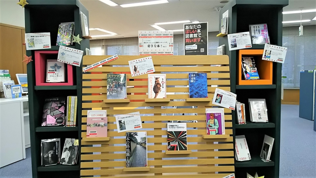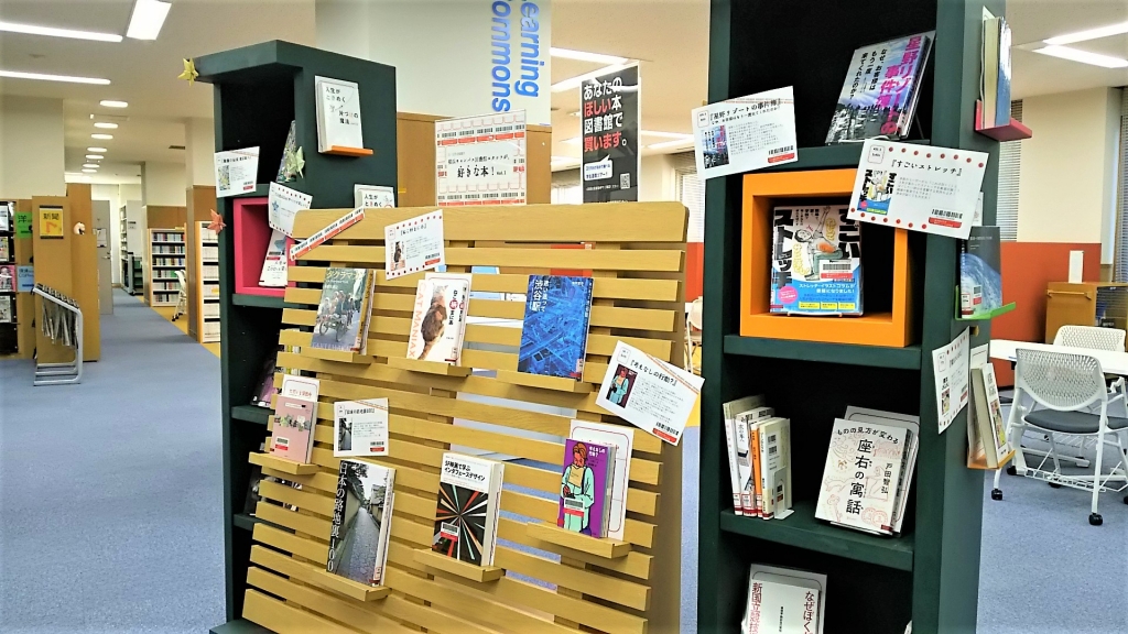 横浜キャンパスの図書館スタッフ7名が、本学の蔵書から選んだ「好きな本」を展示中です。今回はあえて小説以外の様々なジャンルの本を選びました。デザイン・猫・ストレッチ・片づけ・建築・宇宙・哲学など、どの本にも「好き!」「面白い!」が詰まっています。ぜひ手に取ってみてください。 (写真は大きくなります)※横浜キャンパス図書館のWeb本棚で展示図書を公開中