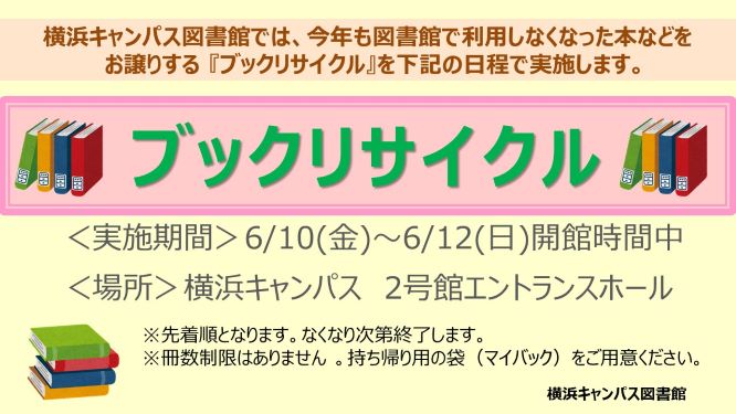 『ブックリサイクル』を下記の日程で実施します。