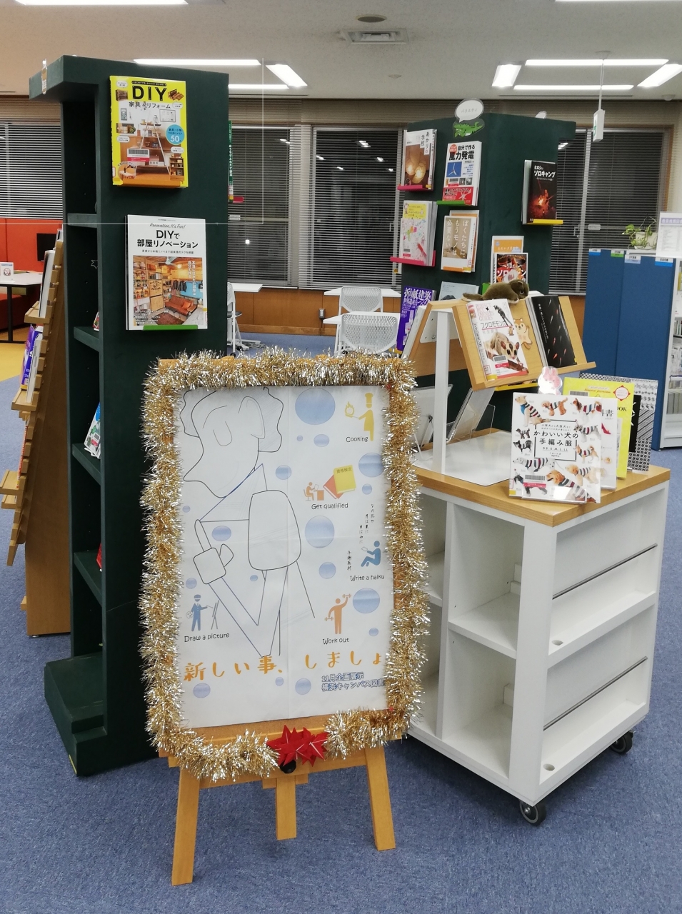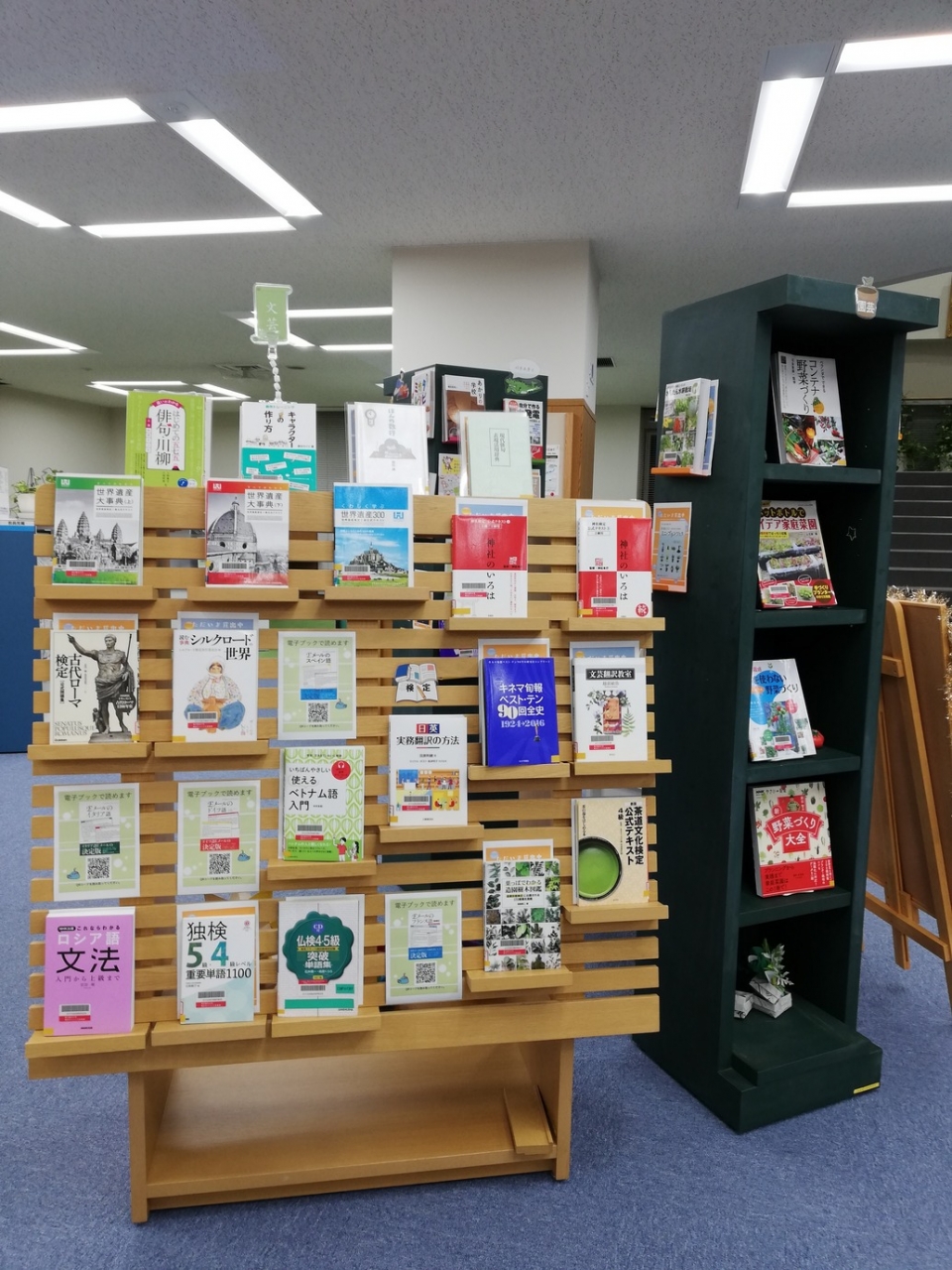 新たに始められそうな趣味や、第二外国語、世界遺産検定などちょっと変わった資格に関する図書を展示中です。